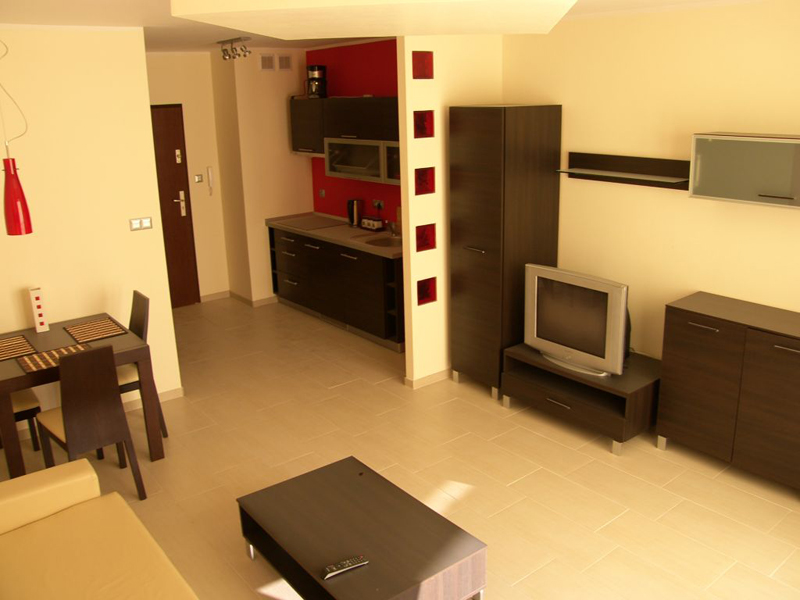 Apartamentowiec Villa Marea to nowoczesny budynek apartamentowy położony w Międzyzdrojach wyposażony w najnowsze rozwiązania techniczne oraz wykończony w najwyższym standardzie. Dodatkowo wysoki komfort wypoczynku zapewnia całodobowy monitoring i ochrona znajdująca się w budynku. Wspaniała lokalizacja obiektu (zaledwie 200 metrów od morza) sprawia, że wypoczynek tutaj to czysta przyjemność w otarciu o prawdziwy luksus. Apartament przeznaczony jest dla dwóch osób dorosłych +jednego dziecka. Składa się z przestronnego pokoju gościnnego z jadalnią , aneksu kuchennego oraz łazienki z toaletą i kabiną prysznicową. W apartamencie znajduje się mały balkon. W apartamencie zainstalowane jest telewizor oraz dostęp do telewizji kablowej i internetu. W apartamencie obowiązuje zakaz palenia. Kuchnia Nowoczesna i komfortowa kuchnia połączona z salonem gościnnym jadalnią. Wyposażona w nowoczesny sprzęt kuchenny (elektryczną płyt, lodówkę i okapnik) umożliwiający przyrządzanie posiłków niezbędnych podczas wypoczynkowego pobytu. Dodatkowe wyposażenie, którym jest czajnik bezprzewodowy oraz ekspres do kawy na pewno ułatwi i umili korzystanie z mieszkania. Pokój gościnny Rozkładany wypoczynek (2 osobowy), stolik kawowy i stół jadalny, a także duży telewizor i łącze internetowe sprawia, że pobyt staję się nie tylko komfortowy i przyjemny ale także pozwala na kontakt ze światem,znajomymi czy firmą. Idealnie wkomponowane oświetlenie, ciekawe dodatki czy nowoczesne obrazy sprawia, że każdy będzie odprężony i wypoczęty. Łazienka z toaletą Przytulna i ciepła łazienka z toaletą wraz z kabiną prysznicową wyposażona w nowoczesną armaturę, glazurę i terakotę zapewnia komfort na najwyższym poziomie. Informacje dodatkowe W cenę nie jest wliczone końcowe sprzątanie i wymiana pościeli. Prosimy zabrać własne ręczniki. W apartamencie obowiązuje Zakaz palenia, oraz przebywania wraz ze zwierzętami. |